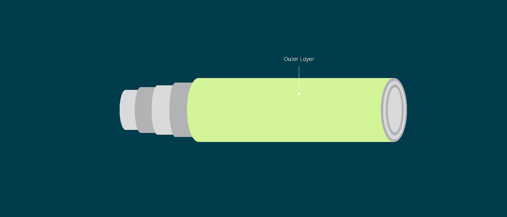 The outer layer of the hose, also known as the outer bore, plays a crucial role in protecting both the inside of the hose and the environment in which the hose is used. It must be robust and flexible at the same time to ensure easy handling. In addition, it is necessary that the hose cover can permanently withstand the chemical, mechanical and physical stresses, similar to the hose interior.